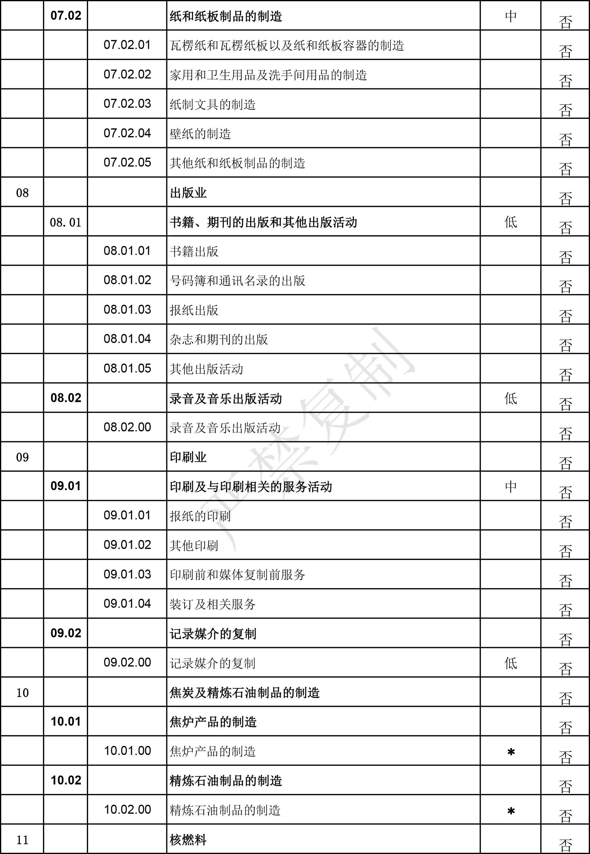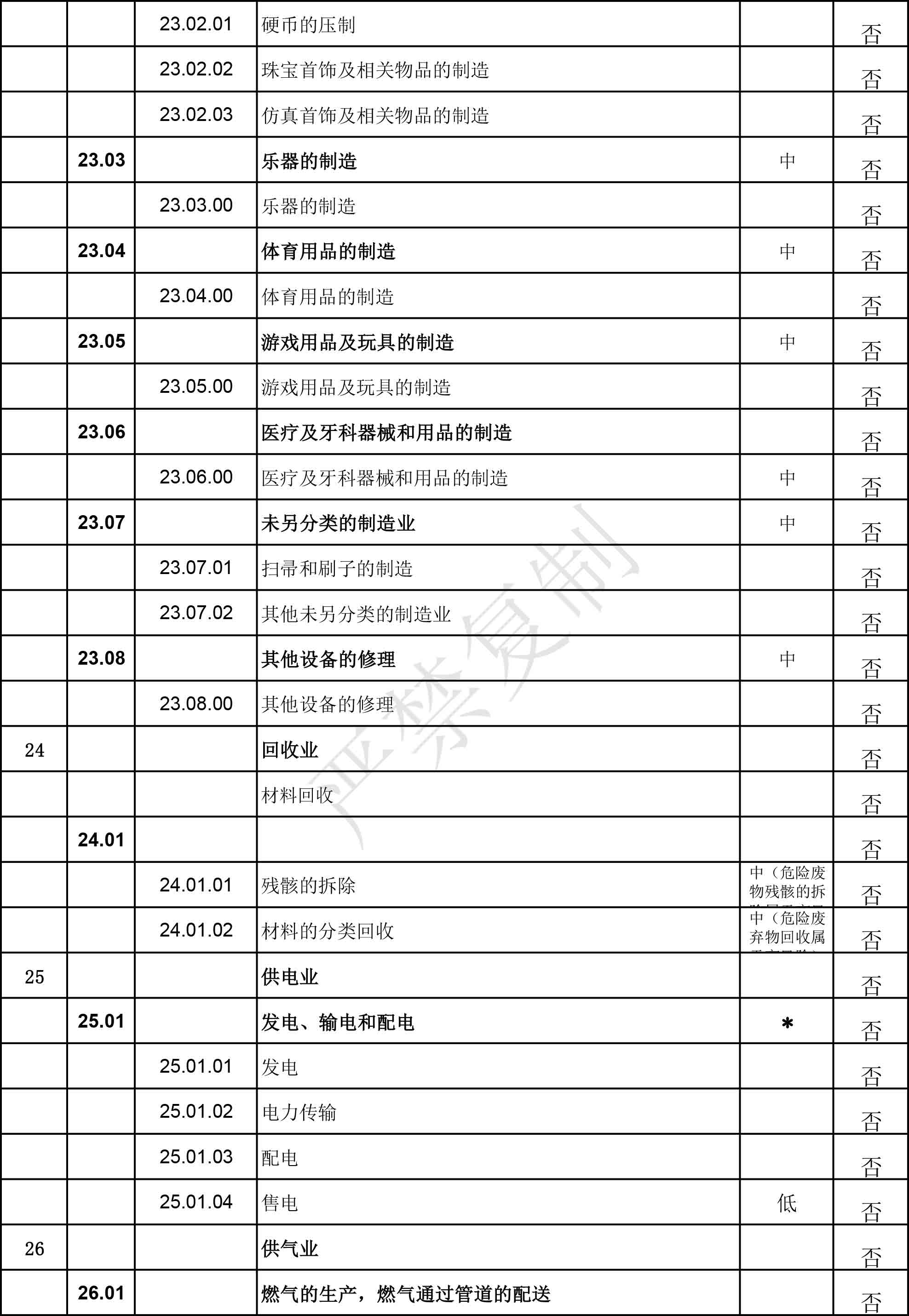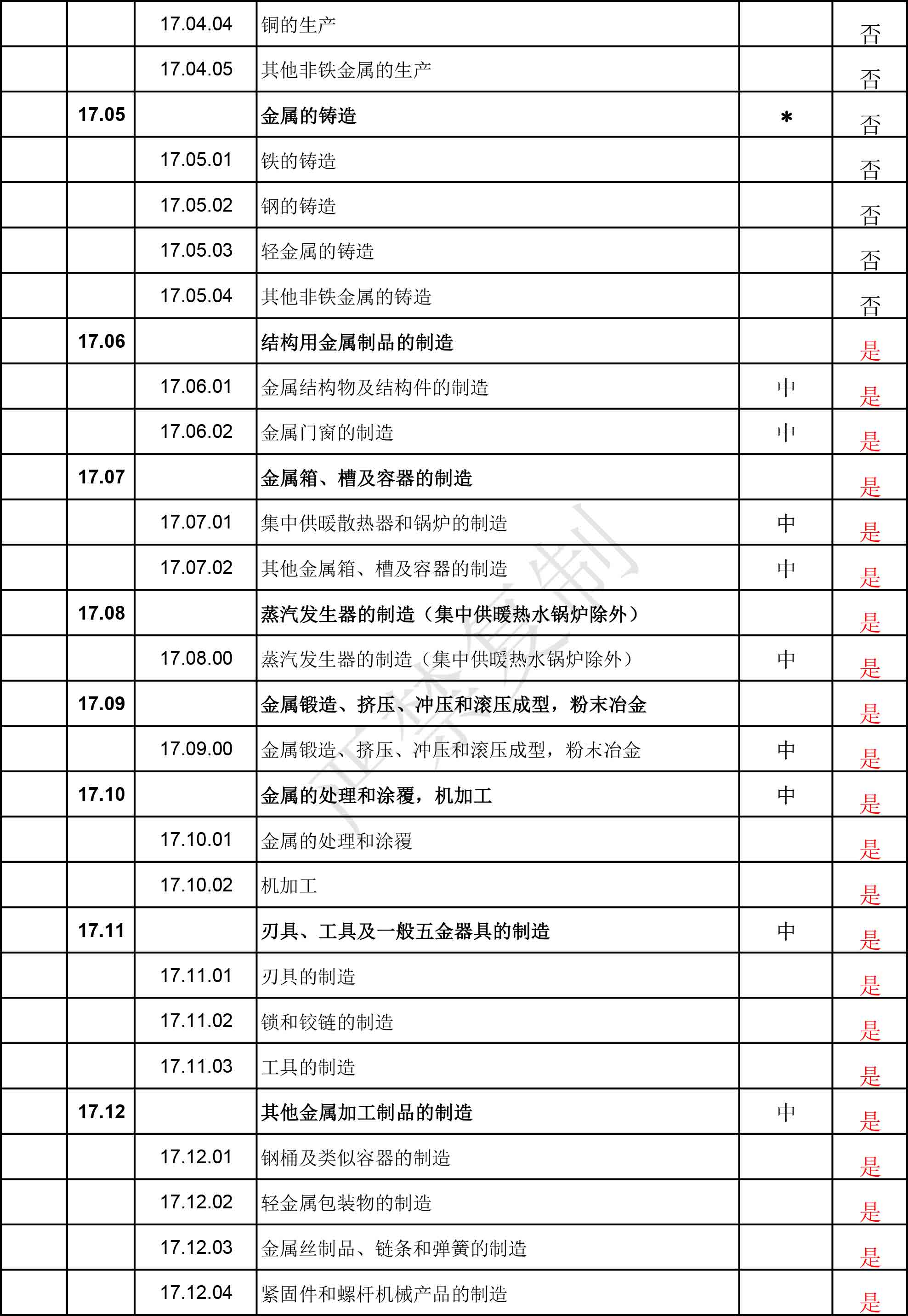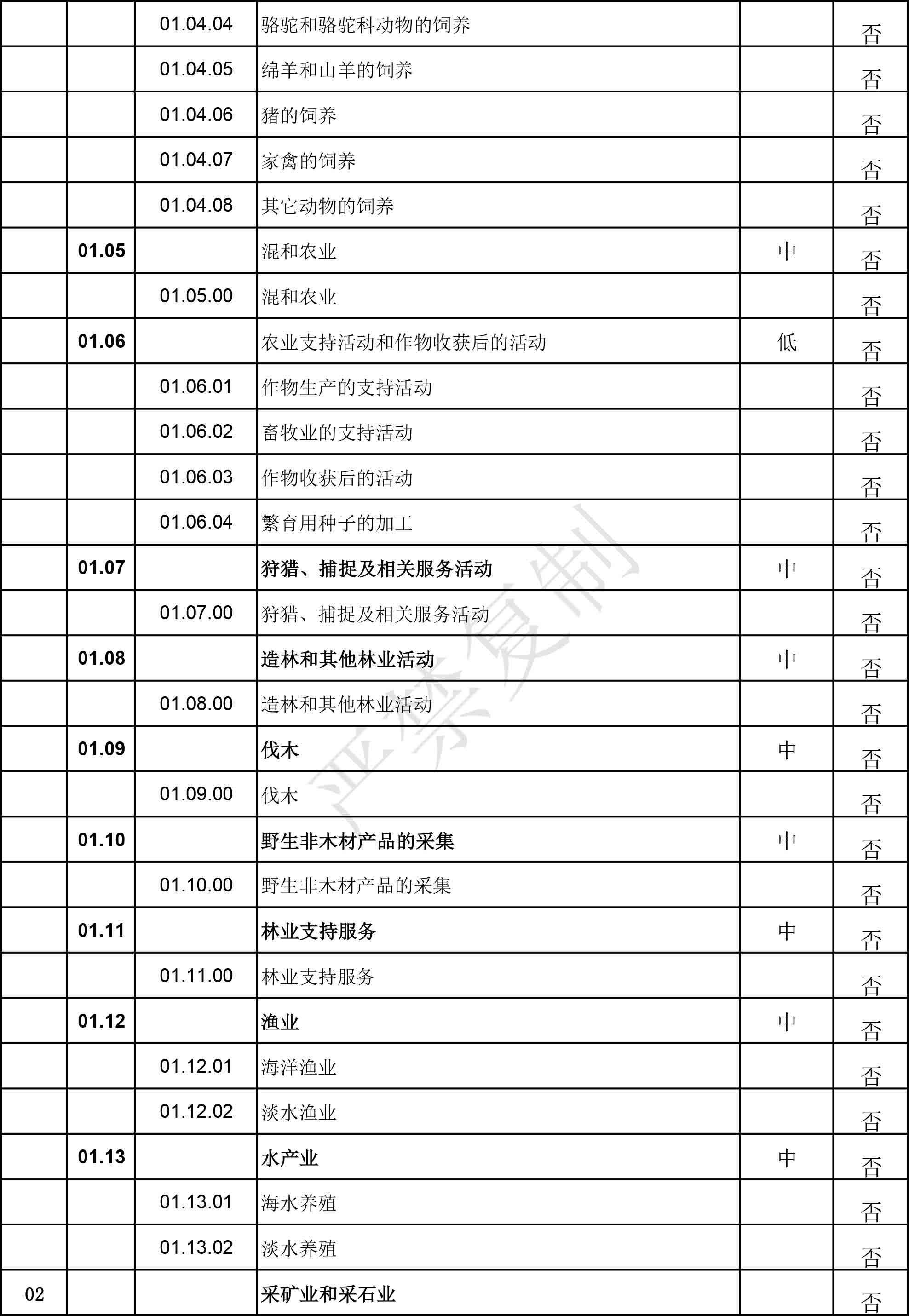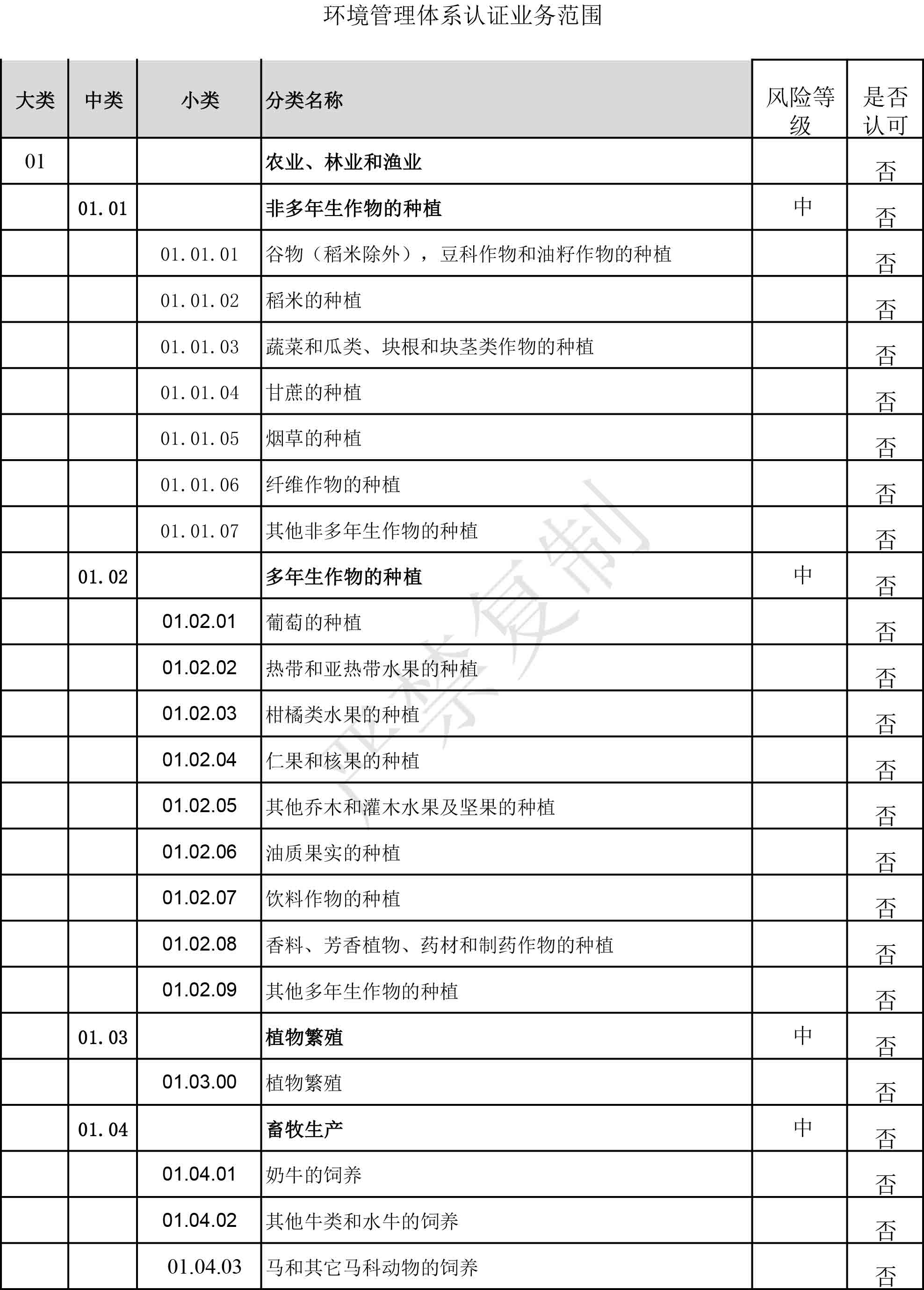 ISO14001环境管理体系认证业务范围分类表(EMS)