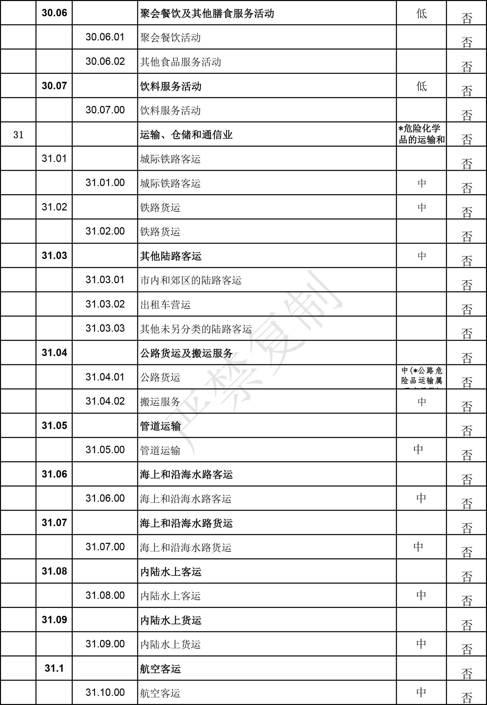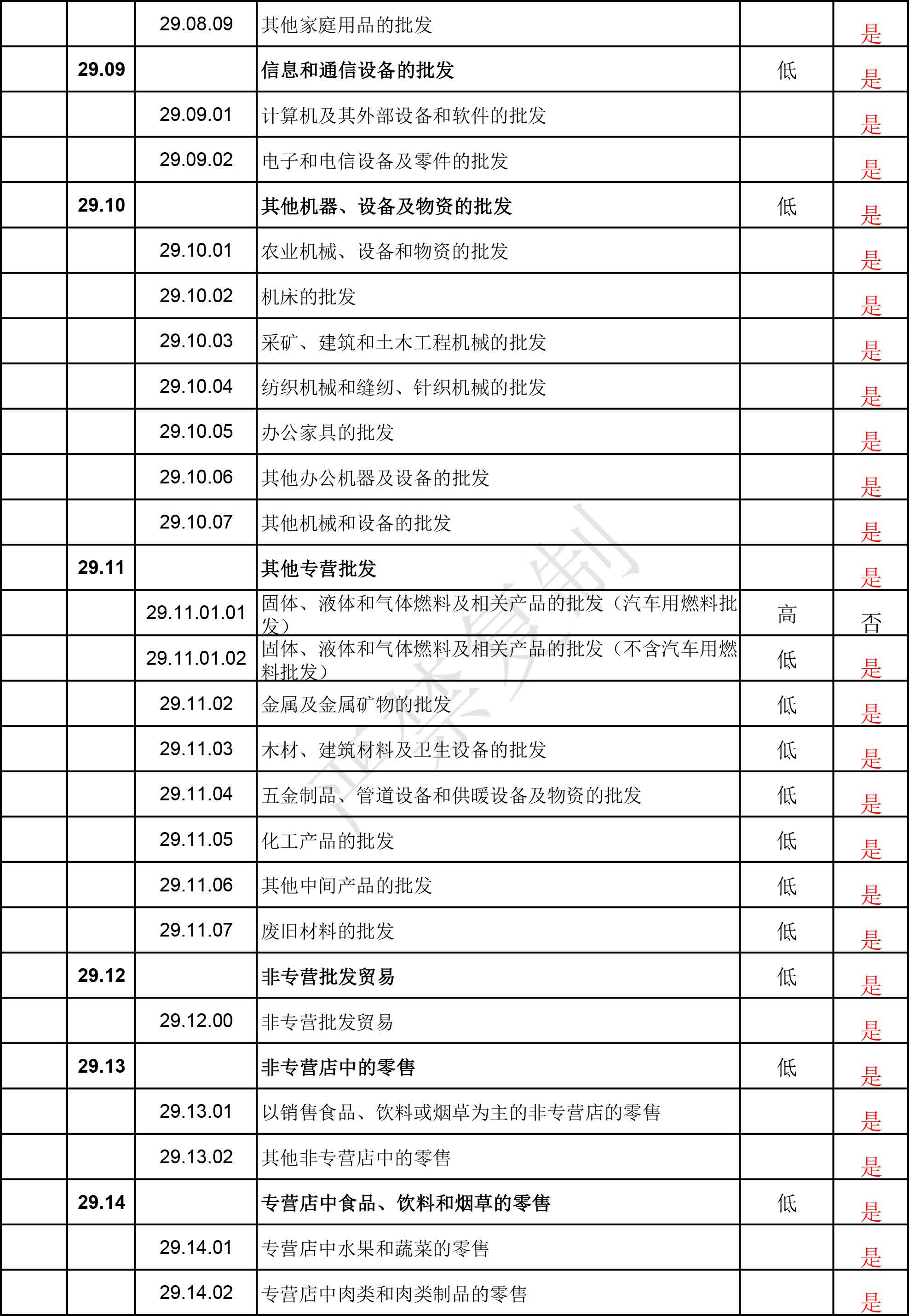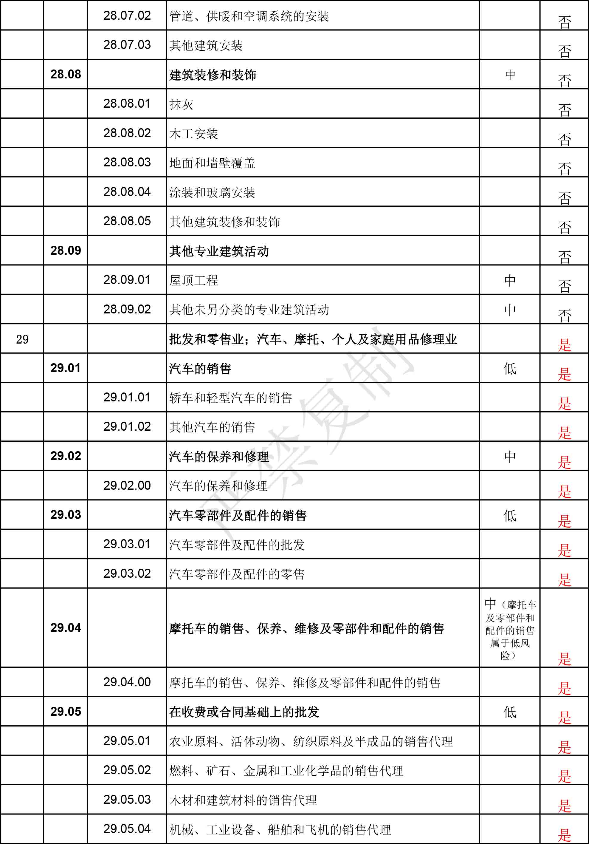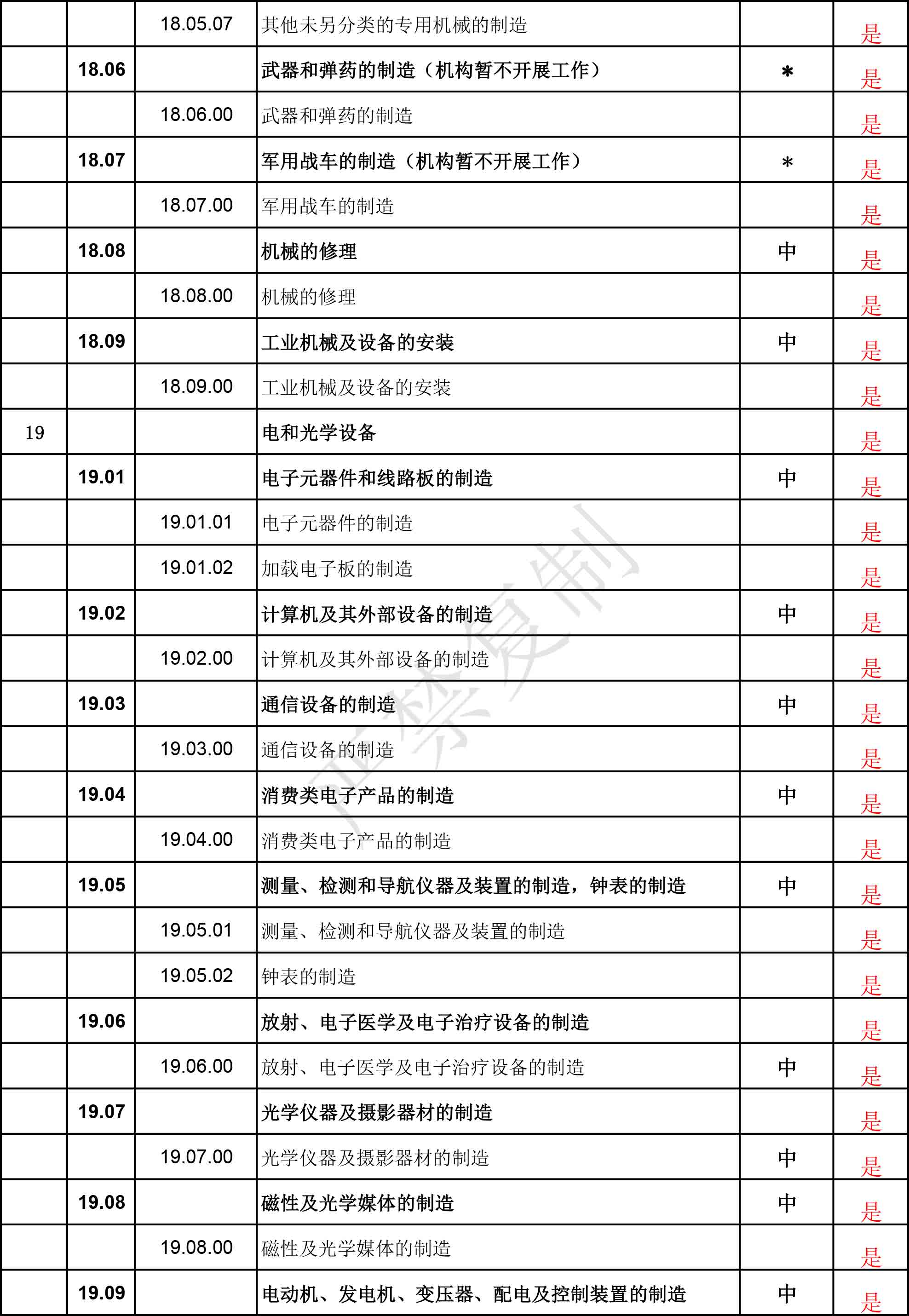 ISO45001职业健康安全管理体系认证业务范围分类表(OHSMS)