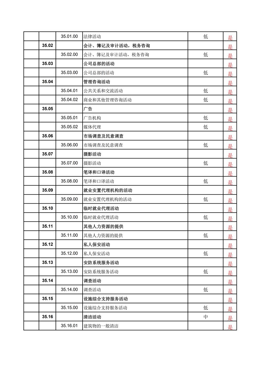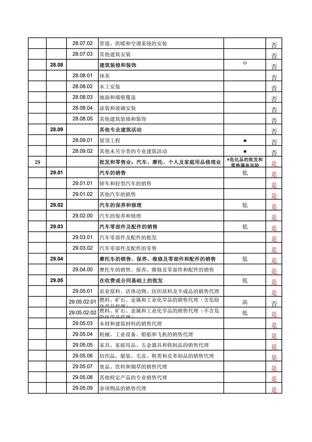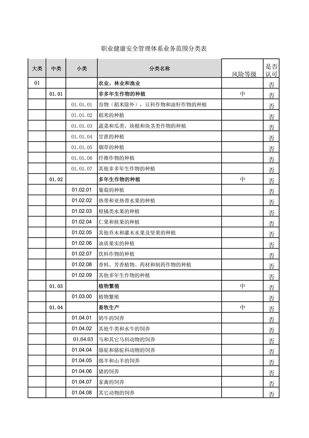 ISO45001职业健康安全管理体系认证业务范围分类表(OHSMS)