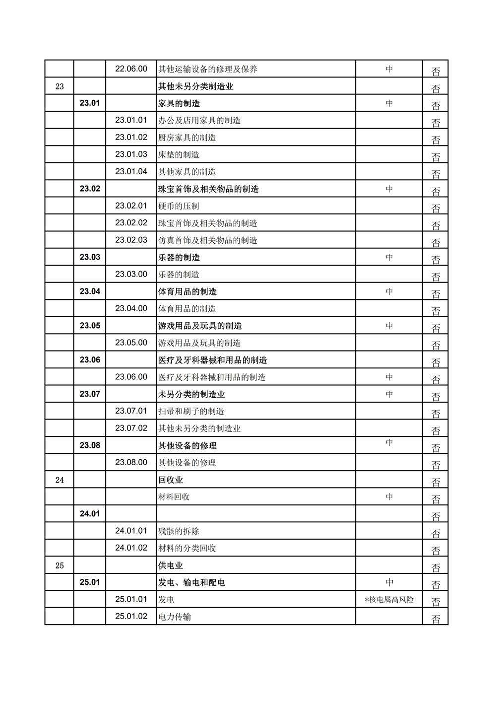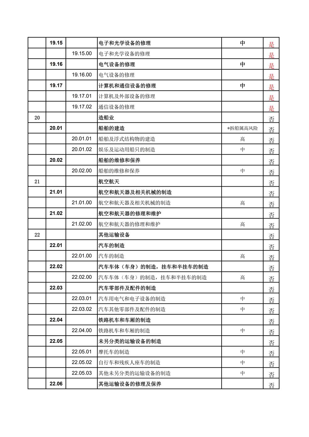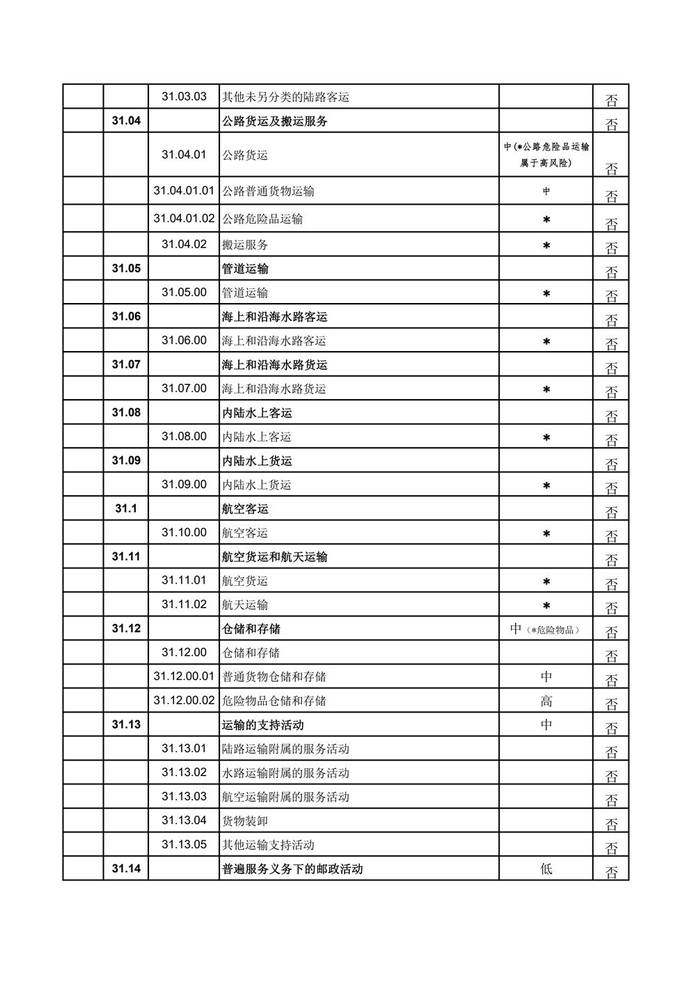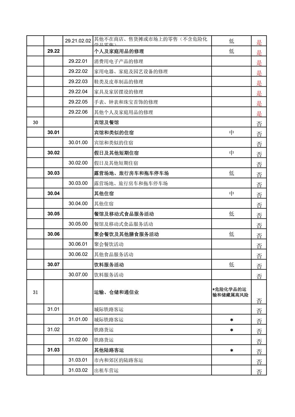 ISO45001职业健康安全管理体系认证业务范围分类表(OHSMS)