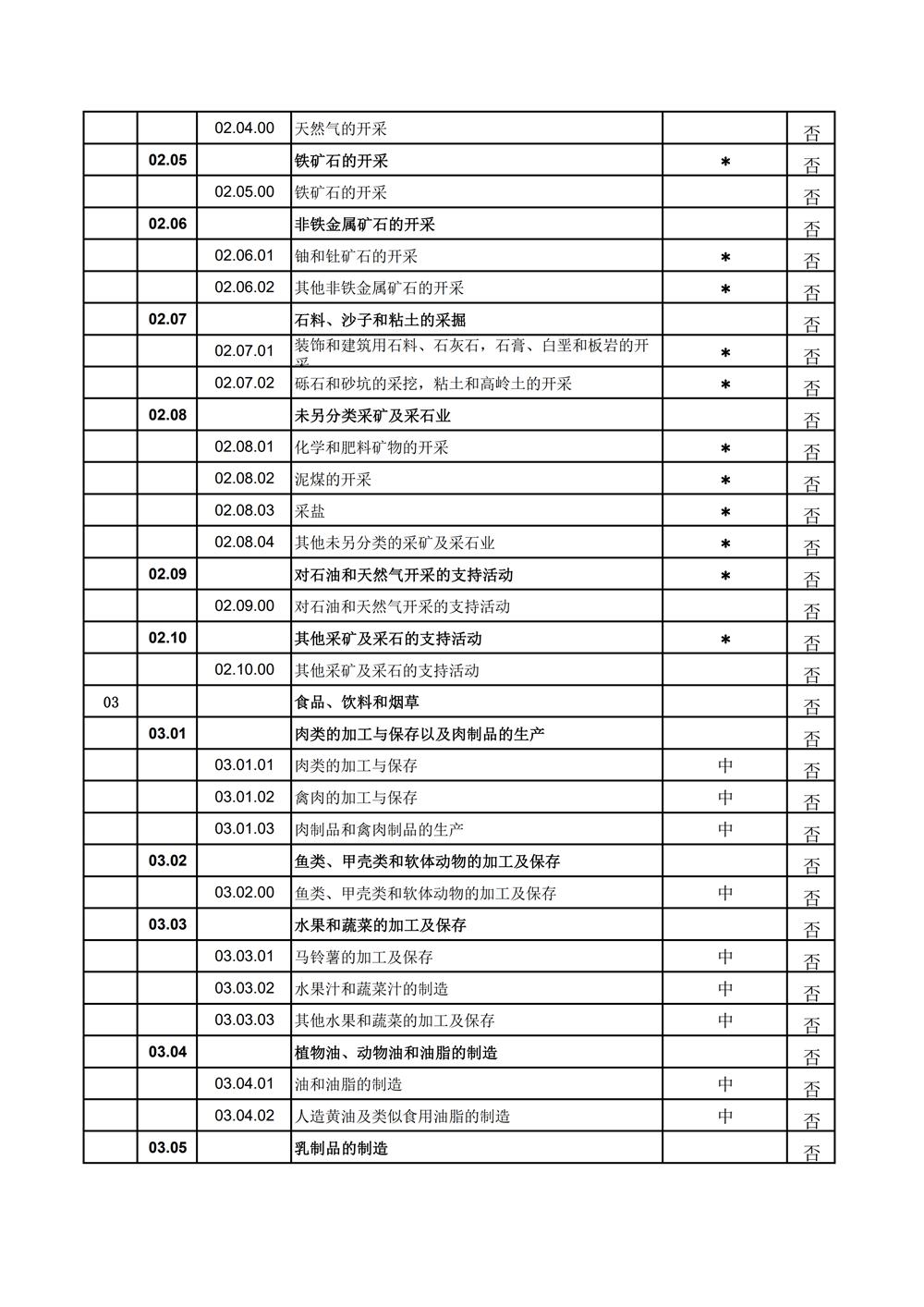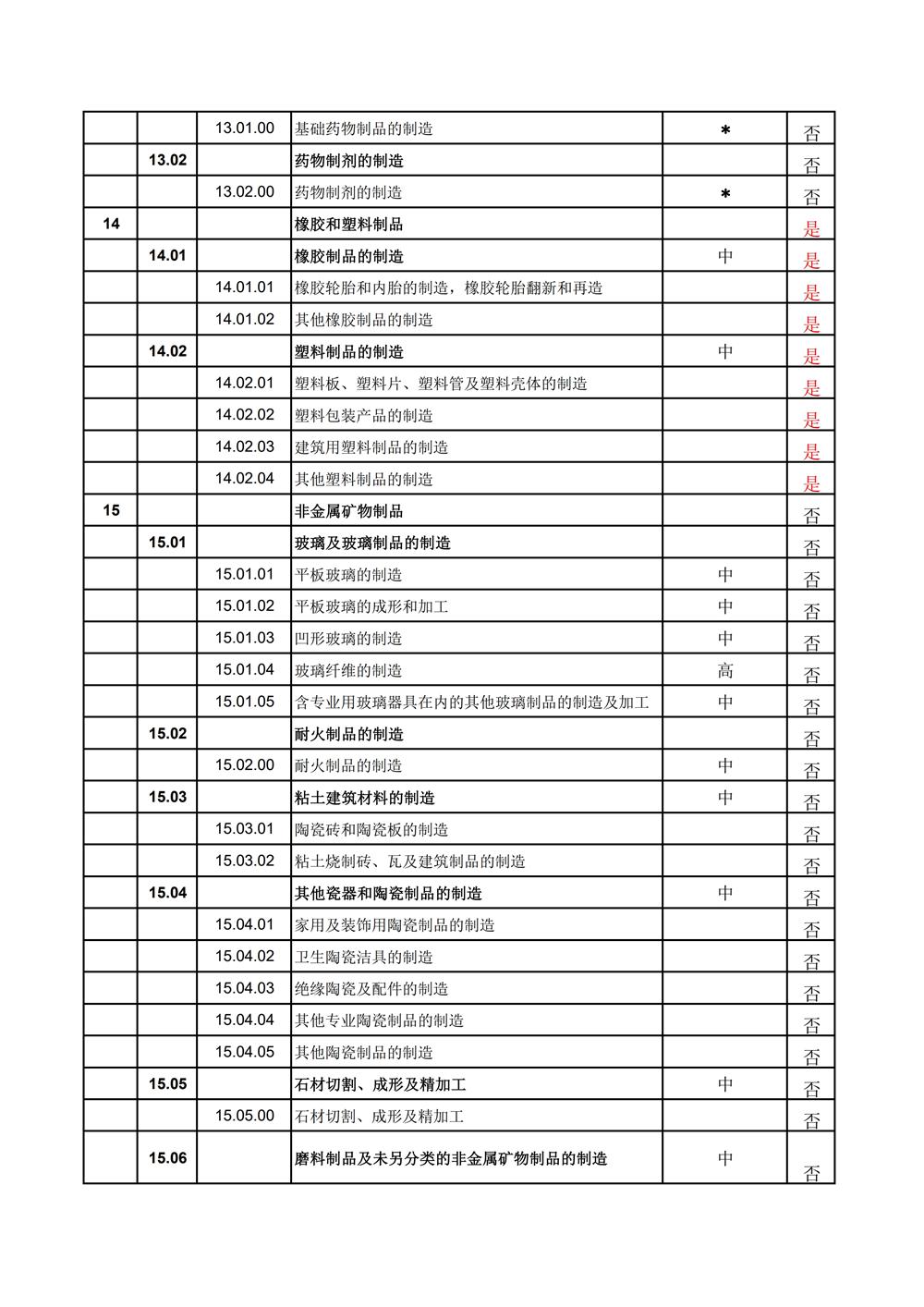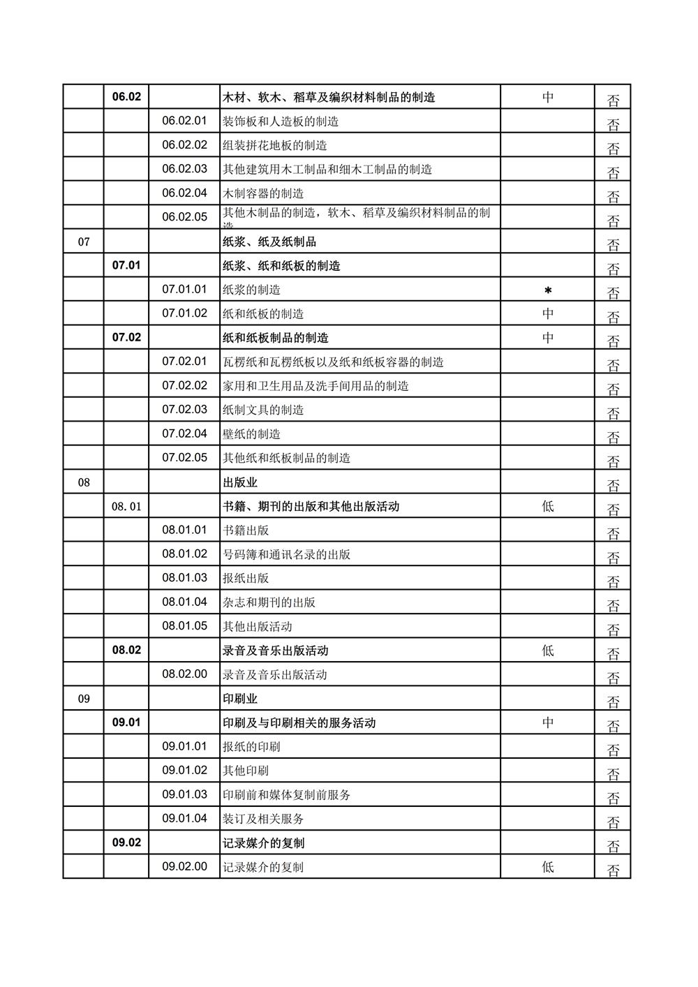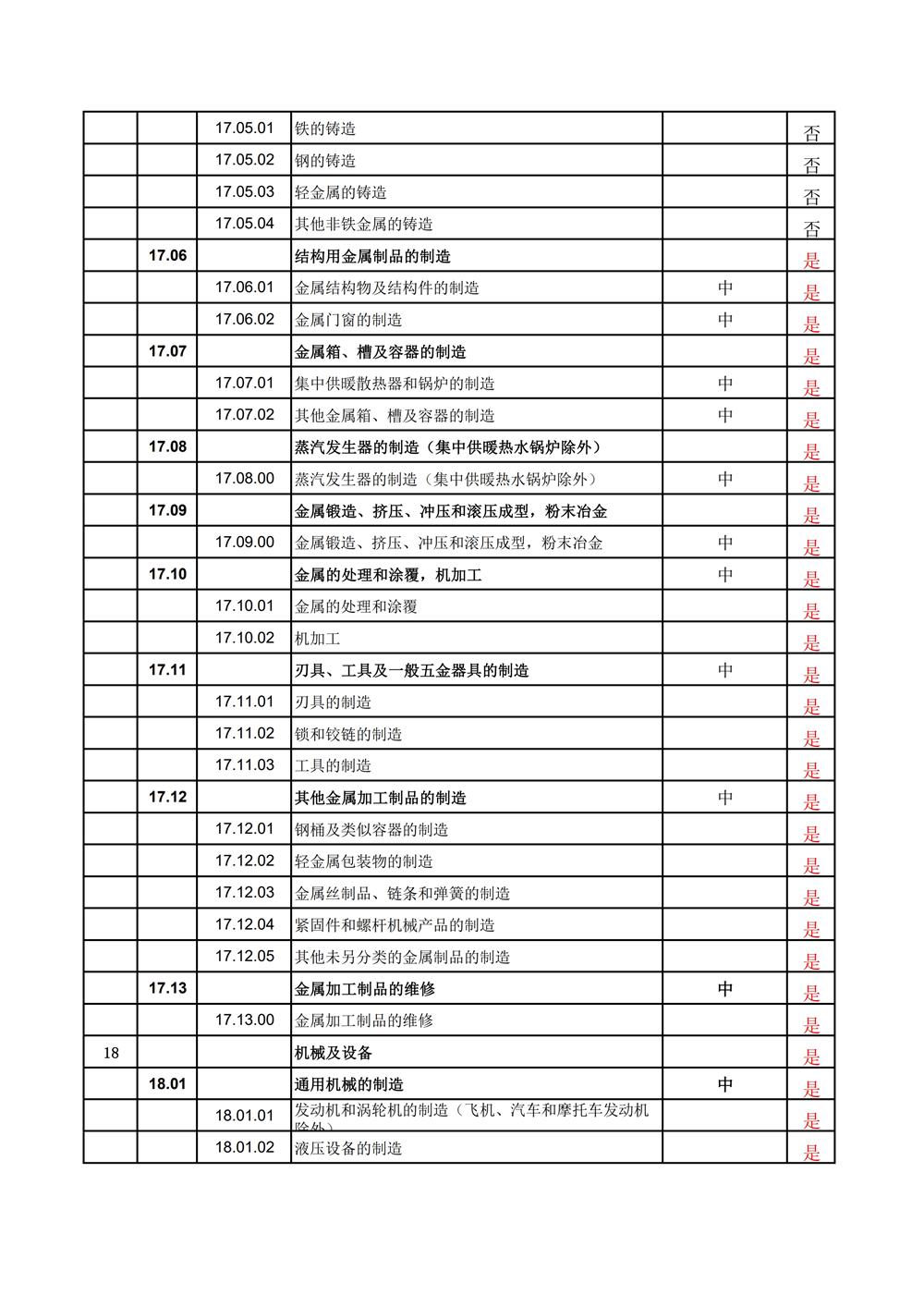ISO14001环境管理体系认证业务范围分类表(EMS)
