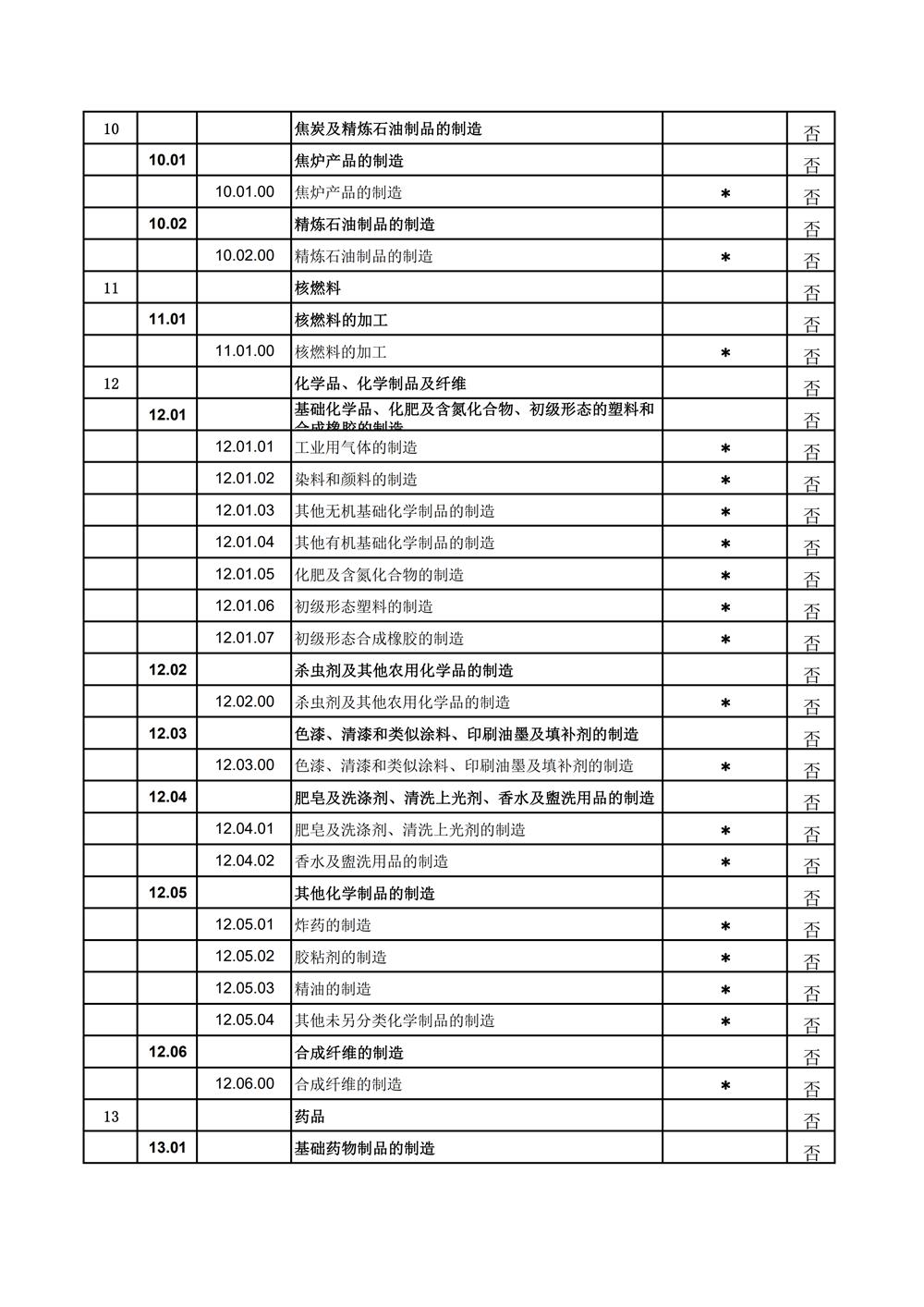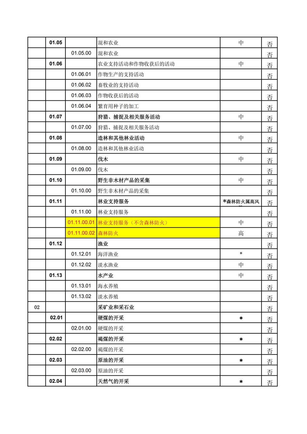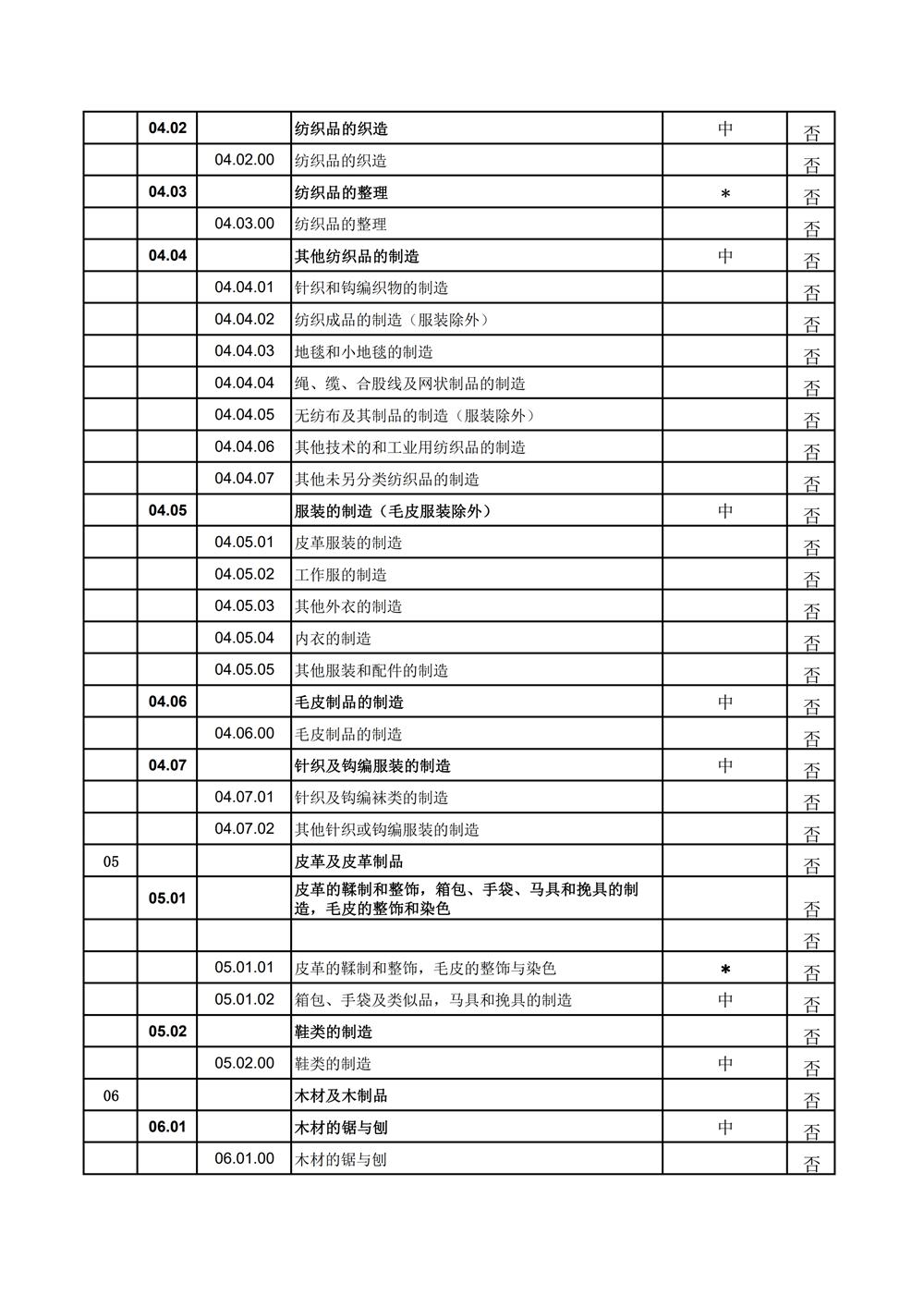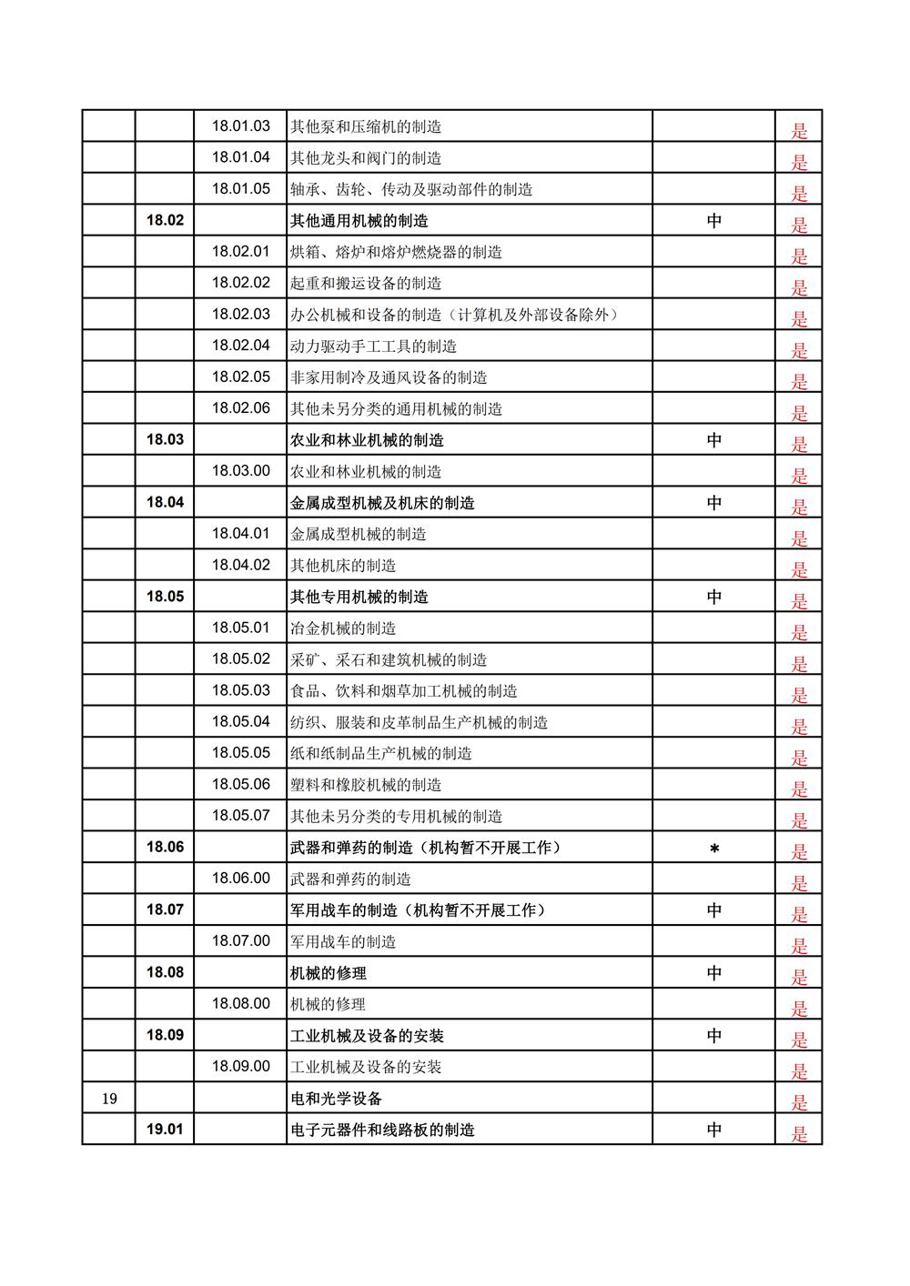 ISO14001环境管理体系认证业务范围分类表(EMS)
