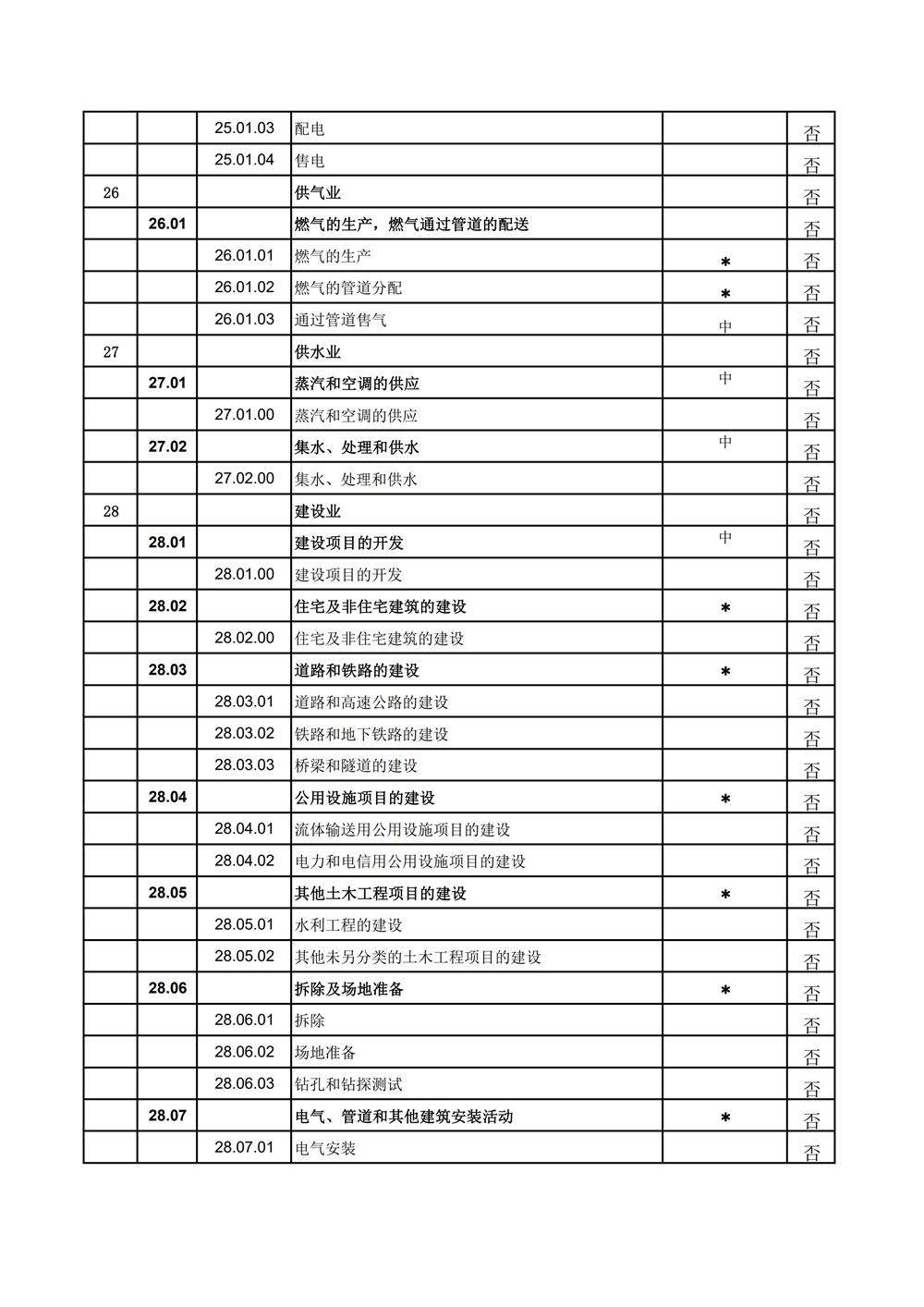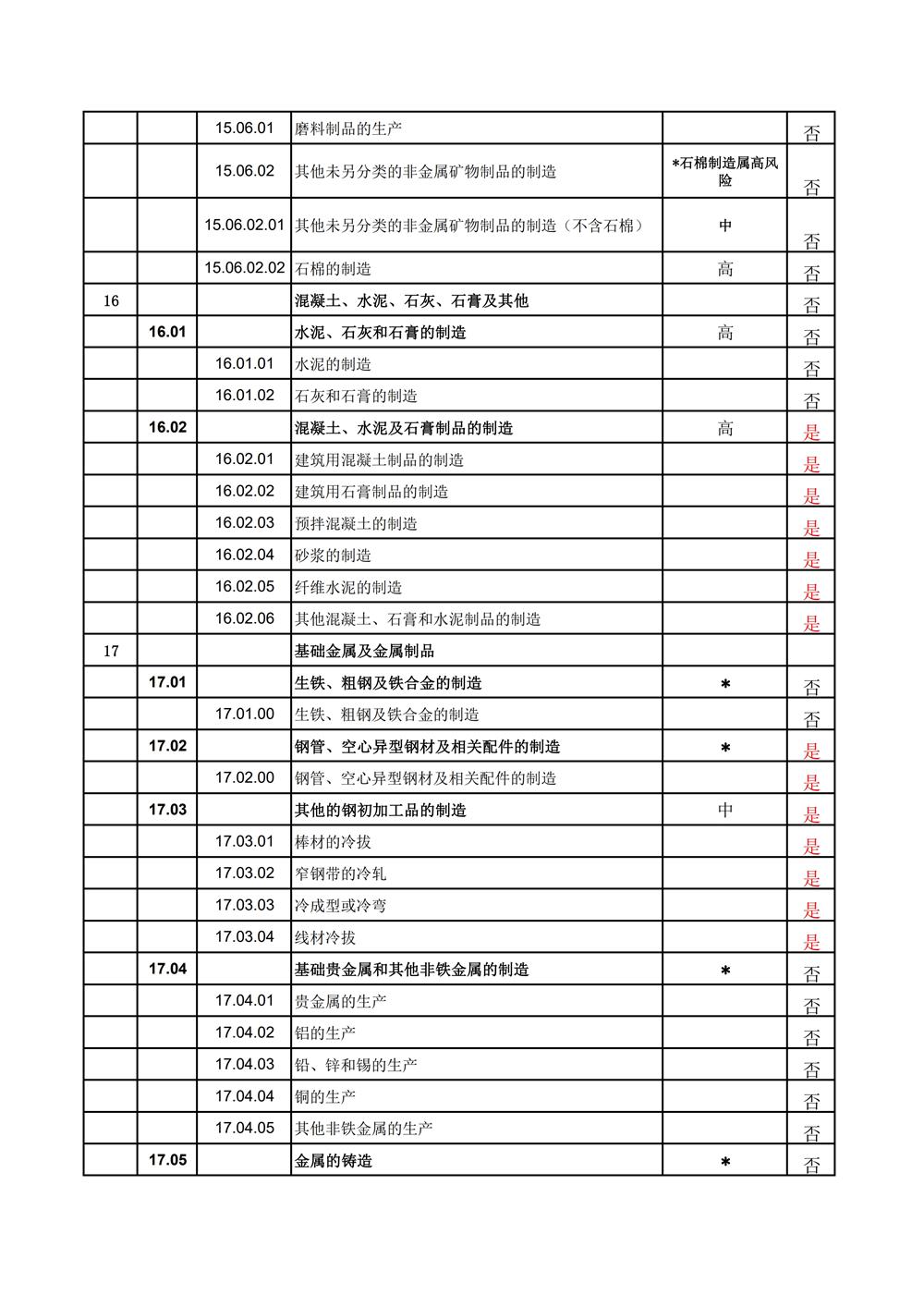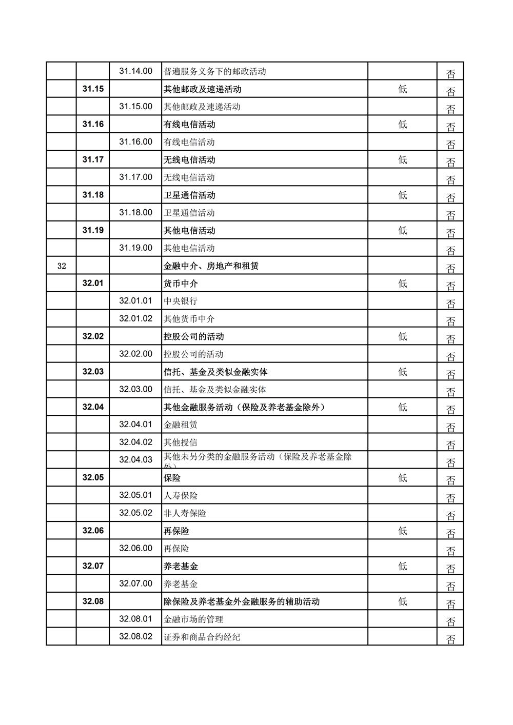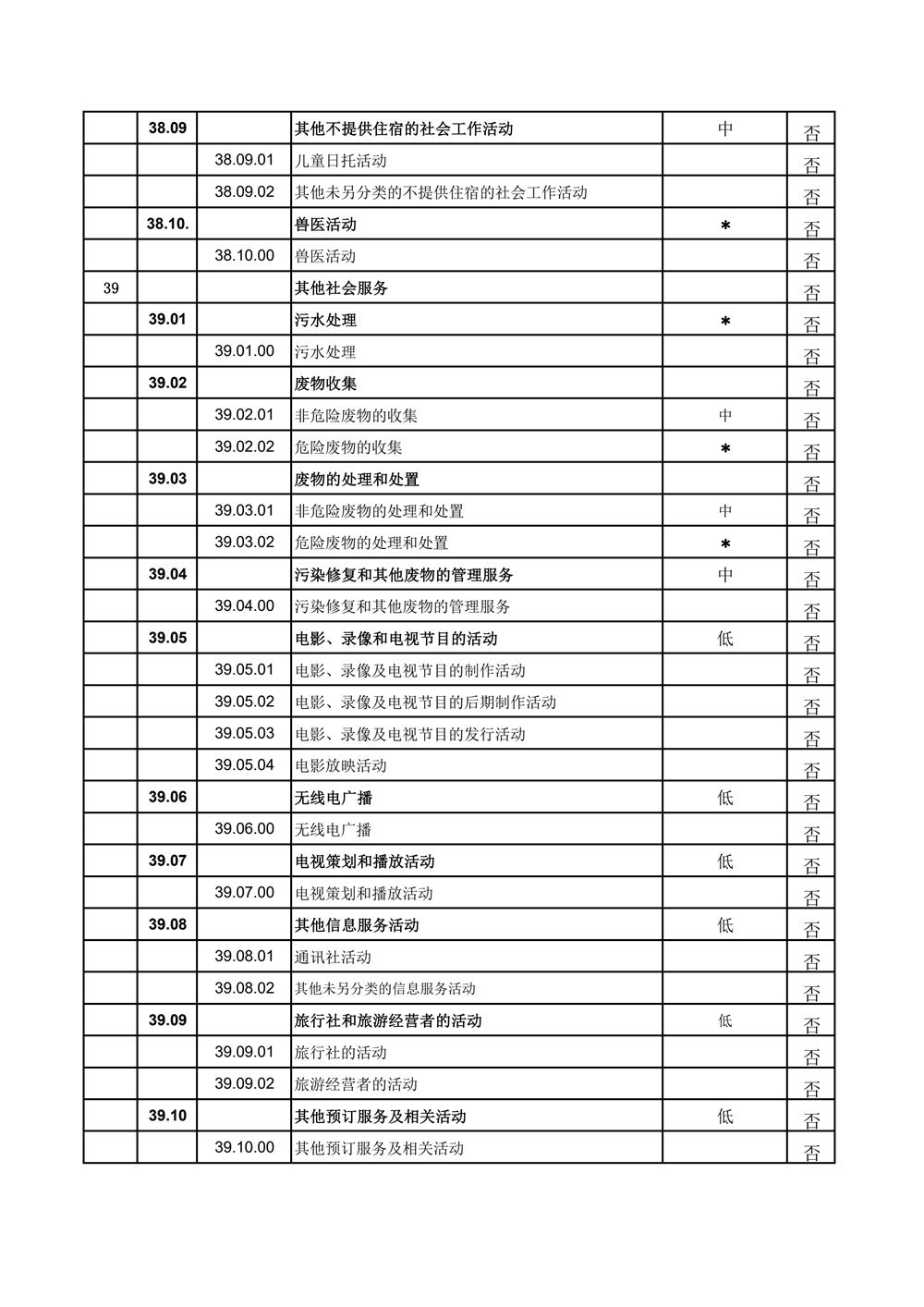 ISO14001环境管理体系认证业务范围分类表(EMS)
