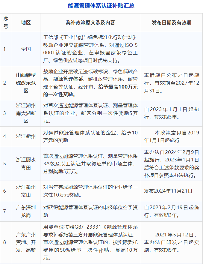 最高100万丨25年最新ISO50001能源管理体系认证补贴汇总