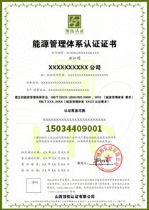 ISO50001能源认证证书样本