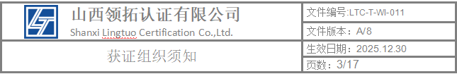 3) LTC严格为所有受审核方的技术和商业信息保密,制定严格的保密制度和程序,保证各级人员对在认证过程中所获信息未经受审核方书面允许,不得泄露给第三方。