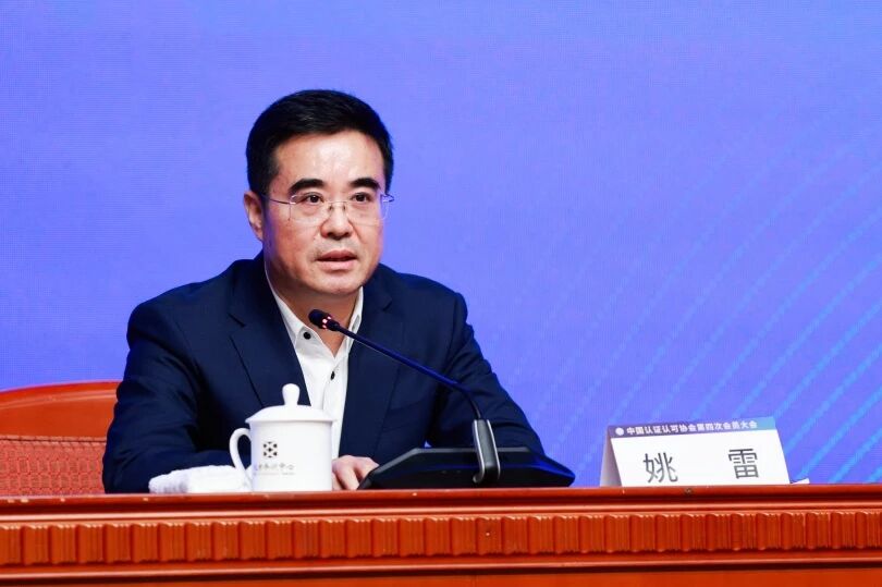 受市场监管总局党组成员、副局长,国家认监委主任束为委托,姚雷转达了对协会工作的关心和肯定。他指出,协会作为全国认证认可行业的社会组织,承担着参与构建中国特色认证认可治理体系、推动认证认可事业创新发展的重要使命。协会自成立以来始终在党中央、国务院的坚强领导下,在中央社会工作部、民政部、市场监管总局的有力指导下,在王凤清、朱光沛等老会长的带领下,团结带领全体会员守正创新、攻坚克难,取得了一系列成绩,尤其是在履行行业自律、认证人员注册、行业服务、行业标准研发和坚持党建引领等五方面做出了积极贡献。当前,党中央、国务院高度重视认证认可工作,提出了一系列要求,做出了一系列部署,全行业要始终围绕2025年全国认证认可检验检测工作会议提出的“五个坚持”作为解决行业公信力不强、专业化不足、国际话语权不够等突出问题的着力点。他强调,协会要以本次换届为契机,始终坚持党的领导,认真落实好中央社会工作部、民政部和市场监管总局文件精神与要求指示,健全理事会运行、保障和监督等各项工作制度,更好发挥自身桥梁纽带和服务行业发展的重要作用,为认证认可事业高质量发展贡献力量。同时结合国家认监委推进“六大行动”部署与协会未来工作提出六点希望:一是牢记初心使命,完善协会功能定位;二是发挥桥梁纽带作用,凝聚行业发展合力;三是深化合作交流,搭建全方位服务平台;四是强化技术支撑,打造高水平行业智库;五是聚焦人才建设,为行业发展提供有力支撑;六是强化党建引领,完善法人治理结构。