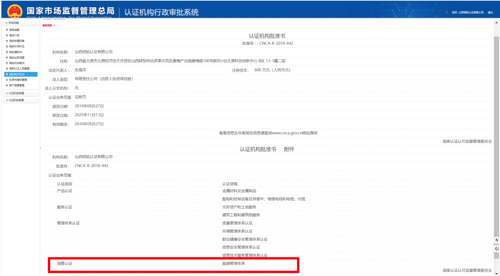 历经严格审批,山西领拓认证有限公司顺利通过能源管理体系认证资质审批,获批能源管理体系认证资格,具备开展能源管理体系认证资格;