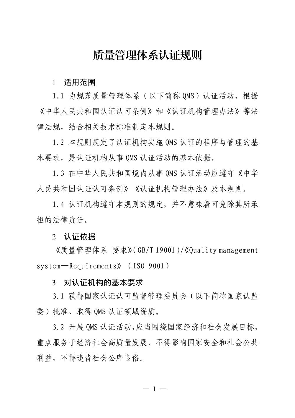 ISO9001质量管理体系认证规则