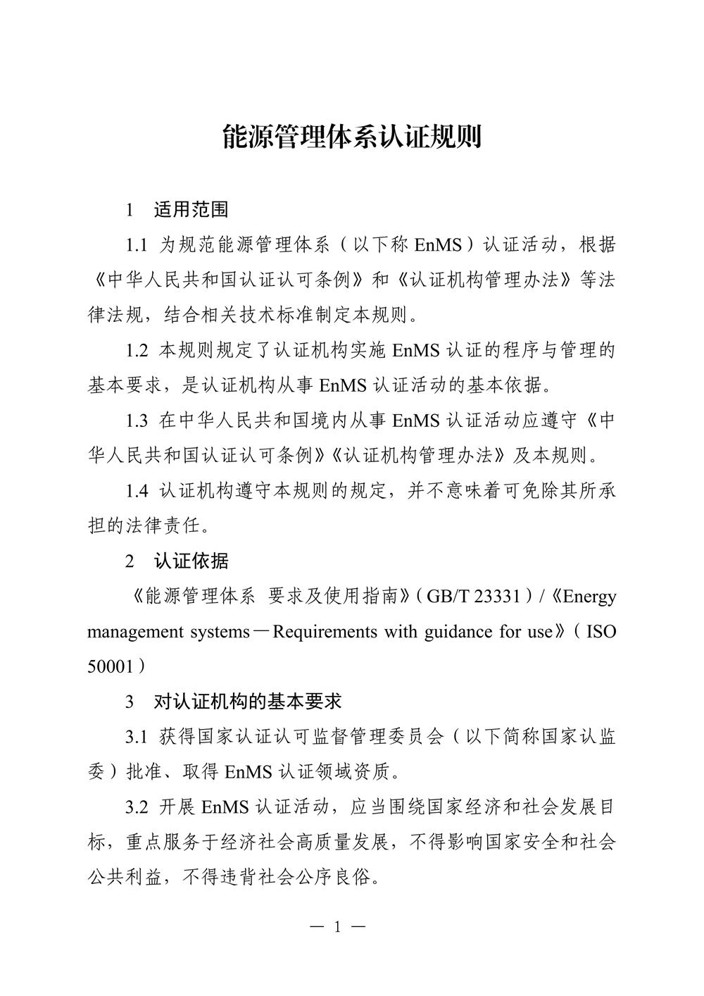 ISO50001能源管理体系认证规则